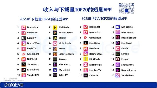 DataEye数据显示,收入榜TOP25的海外微短剧APP的内购收入占海外微短剧APP总内购收入近六成,头部效应显著。ReelShort、DramaBox(点众)、GoodShort(新阅时代)、ShortMax(九州)等平台已形成一定领先优势。