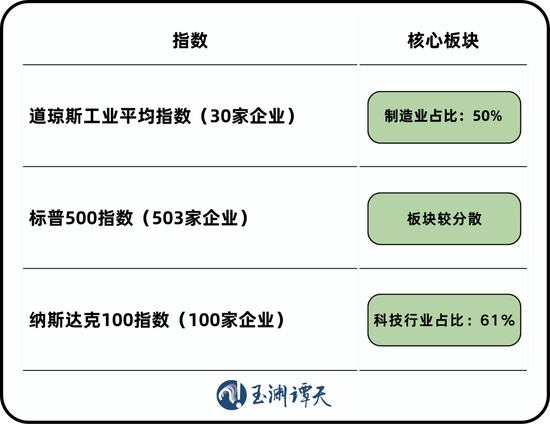 标普500和纳斯达克采用“市值加权”,权重最大的是那几个科技巨头;而道指用的是“股价加权”,高价股走强,也能拉动整体指数。