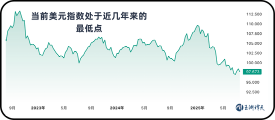 今年以来,美元指数确实不断走弱,已经跌至近年来的低点。而支撑其强势地位的财政、科技、股市这三个元素,也开始显露疲态。